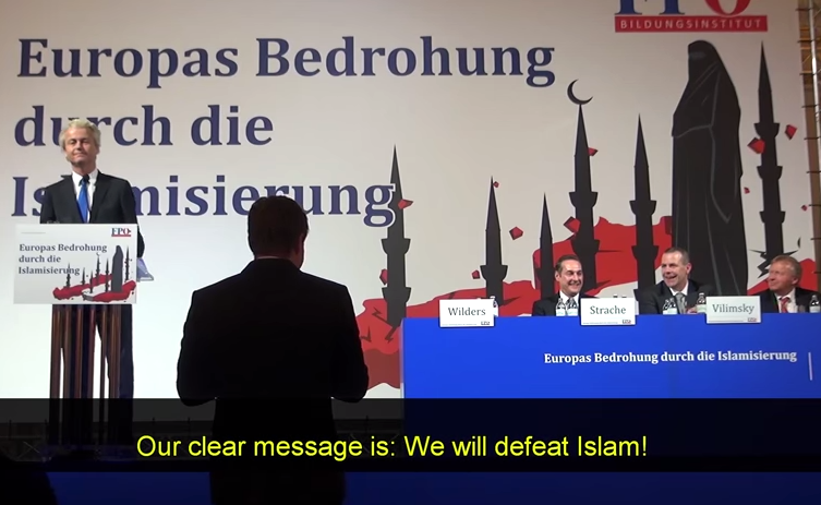 威爾德斯指出,「去年來到歐盟尋求政治庇護的難民,超過62萬人,創下歷史新高,其中有3分之2來自伊斯蘭國家。」因此他呼籲,「我們必須重建國家邊防」,更批評波斯灣國家絲毫未思改善難民問題。威爾德斯演講時,奧地利自由黨黨主席斯托拉赫、秘書長費林斯基頻頻鼓掌叫好,斯托拉赫甚至拿起手機拍攝熱情的聽眾留念。