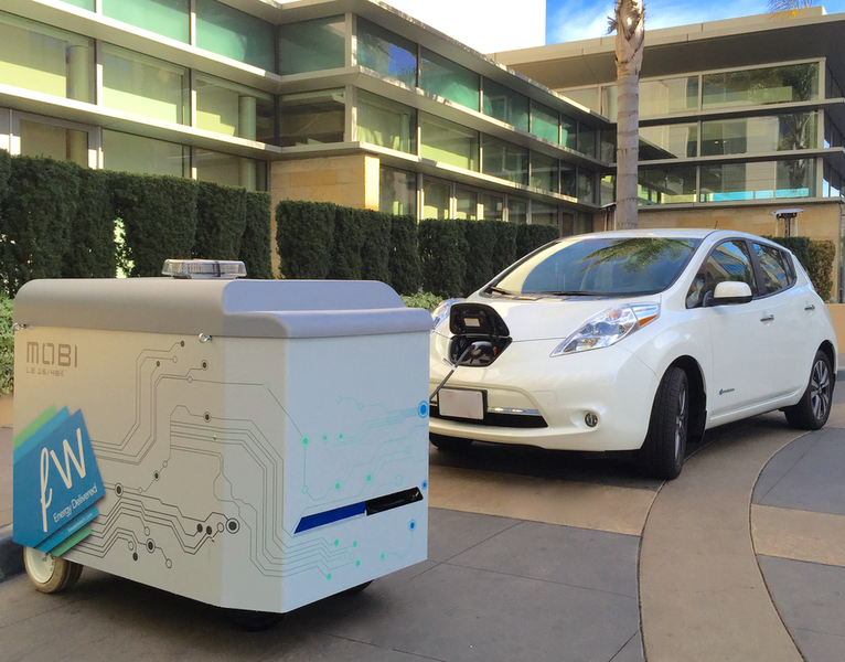 Freewire推出的這款Mobi Charger,外型相當類似冰淇淋推車,底部裝有輪子,相當便於行動,其中裝有48千瓦小時的日產充電電池,可以在半小時內替電動車充好電。除了採用特殊插頭的特斯拉Model S 無法充電外,幾乎可適用包括日產Leaf或飛雅特500e等大多數電動車充電插頭。