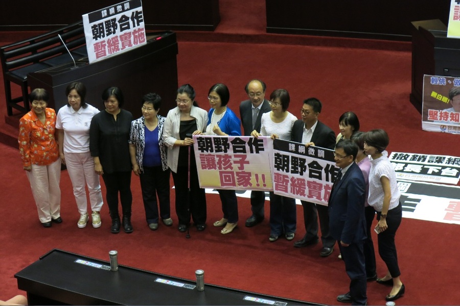 新課綱引起的反對運動由教育部廣場延燒進立法院,民進黨團決議提出「召開臨時會」討論是否暫緩實施新課綱,4日上午,國民黨、民進黨團進行協商,國民黨立委全數反對召開臨時會,隨後兩黨進入「談話會」。