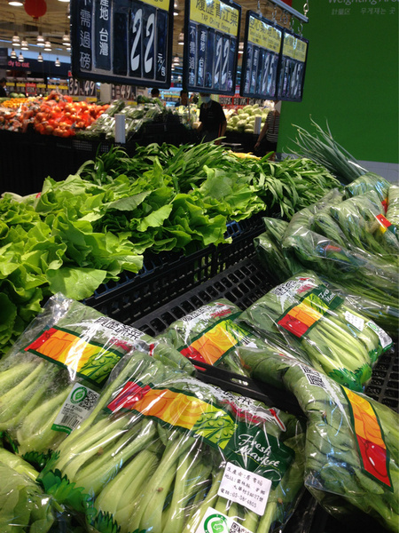 記者實地走訪知名量販店,發現民眾為防颱做準備,正大肆搜括生鮮蔬菜,一般家庭料理常用的青蔥供不應求,而胡蘿蔔、玉米、竹筍等五穀根莖類蔬菜都是民眾搶購的目標,但中高價位的高麗菜仍滯銷架上,正在挑選蔬菜的林姓婦人表示,「高麗菜漲幅非常大,想買我會去傳統市場。」