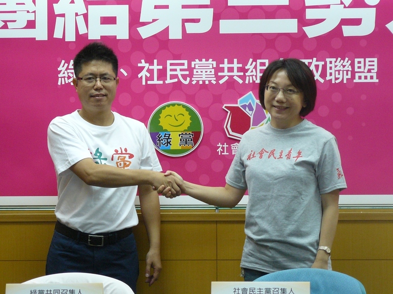 【台灣醒報記者游昇俯台北報導】「同胞須團結,團結真有力!」第三勢力小黨綠黨、社會民主黨17日正式宣布共組參政聯盟,進軍國會。記者會上兩黨都引用台灣民主運動前輩蔣渭水名言,宣示以小黨結盟突破兩大黨向金權靠攏的權貴政治,喊出「淘汰國民黨、監督民進黨」口號,宣誓成為「進步的反對黨」角色。