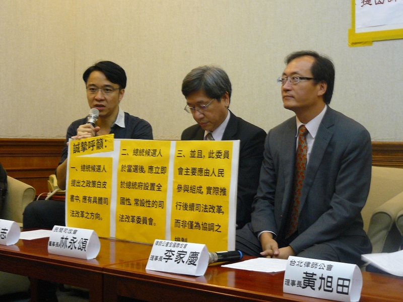律師公會全國聯合會理事長李家慶提到,1999年曾舉辦過3天的司法改革會議,而由當時的司法院長翁岳生帶起改革,但後來對會議結論的改革無法貫徹,加上16年來,今日面對的司法問題又更多了,呼籲2016總統候選人在政策白皮書中提出具體司改方向,並在當選後設置全國性、常設性司法改革委員會。