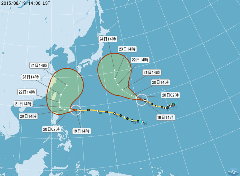 氣象局表示,20日受到天鵝外圍沉降乾區影響,天氣穩定,各地都是多雲到晴的天氣,北部高溫約在33至36度,中部高溫約在33至34度,南部高溫約在32至35度。由於風向為東北風,迎風面的北部及東北部可能有局部短暫陣雨或雷雨,中南部地區也有短暫的午後雷陣雨。