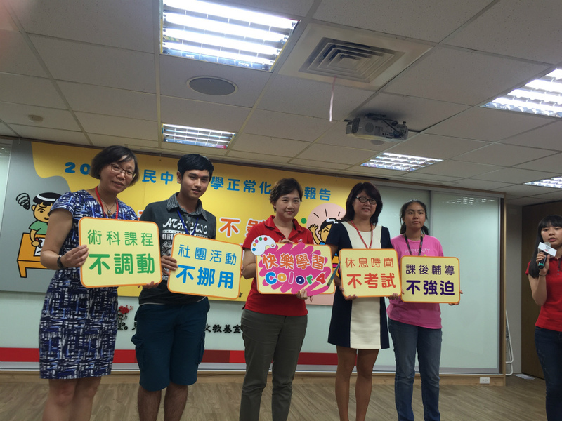 【台灣醒報實習記者陳怡伶台北報導】「強制參加課後輔導、剝奪學生時間、挪用術科課程時間」為當今國中教學內容的3大陋習。親子專家陳安儀的女兒24日在記者會上眼眶泛淚說,「我曾因為不參加課後輔導而遭受同儕排擠、老師指責。」讓她壓力大到轉學。兒童聯盟執行長黃韻璇表示,「希望不要讓孩子的生活只剩考試。」