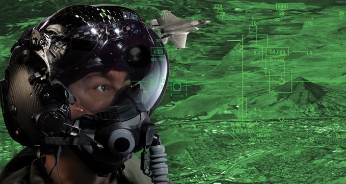 當F-35飛行員駕駛艙內看到遠方的飛機,甚至有一架飛機靠近之前,頭盔面罩上就會顯示關於這架飛機的位置、身份認證等資訊,並自動追蹤這架飛機。若經過敵我辨識程序後發現是敵機,飛行員就可以選擇武器,無需在使用操縱杆的同時低頭去看座艙顯示器,如同開車時不用低頭去看時速一樣。