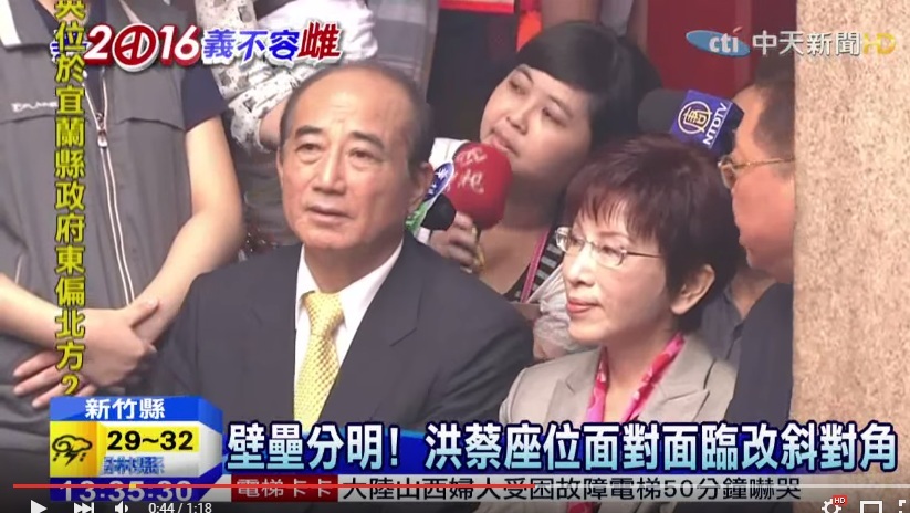 新竹縣新埔鎮褒忠義民廟2日舉行義民節慶祝大典,藍綠總統候選人同時受邀出席,洪秀柱穿著有巧思,在脖子上圍了客家花布,人氣略勝一籌,沿途支持者不斷喊「凍蒜!」並高舉支持標語,還揮舞著國旗。而先到場的蔡英文則是馬上以前交通部長葉菊蘭教過的客家話和鄉親問安,亦有支持者高喊「蔡總統好」。