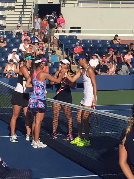 【台灣醒報記者張振鴻綜合報導】女雙好手詹詠然、詹皓晴姊妹7日在美國網球公開賽女雙16強賽事中,遭遇到羅馬尼亞貝古與歐拉魯組合的頑烈挑戰。在歷經2小時39分的3盤大戰後,才辛苦的以5比7、6比1與7比6(4)逆轉勝,晉級到8強後,下一場的對手將是淘汰莊佳容的女雙球后辛吉絲與米爾扎的強勢組合。
