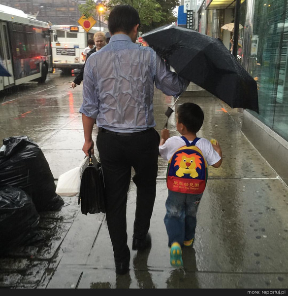 一張爸爸為兒子撐傘、自己襯衫全濕透了的照片,最近在網路上感動了250萬人點閱。「爸爸」是一個神聖的天職,負有保護、教養、引導與祝福兒女的職責,不但深深影響家人的命運,也影響國家的未來。