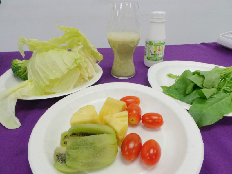 「烤肉時雖然常會生菜包肉,但通常蔬菜攝取量不足。」王進崑表示,民眾在烤肉時可準備300cc的含活菌優酪乳、2顆奇異果、200公克鳳梨、200高麗菜、50公克菠菜及50公克的番茄,以一般果汁機慢速調打,輕鬆製作一杯富含各種營養成分與纖維素的蔬果汁作為營養調和。