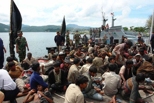 碼頭上的船已經載滿了人,船梯收起,但碼頭上仍擠滿想上船的人。(photo by TEIA on flicker- used under Creative Commons license))