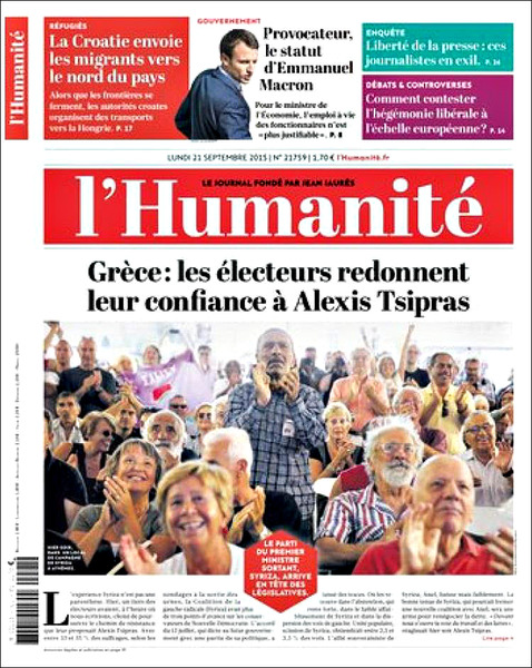 齊普拉斯的極左派在希臘國會重新選舉中再度勝出,以35%的得票率打派右派新民主陣線的28%,獲得50個額外席次。儘管仍不足的10個席次仍然需要靠聯盟才能組閣,但這場勝利貨真價實,顛覆了原先的佈局和期盼。