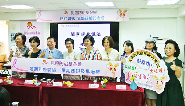 乳癌防治基金會23日舉辦「乳癌篩檢不願做,理由講不完」記者會,衛生福利部國民健康署署長邱淑媞、台北市長柯文哲夫人陳珮琪等人也到場相挺,現場有乳癌患者Terasa述說經歷及提倡乳癌X光攝影篩檢的功用。陳珮琪分享自己篩檢的心得,「過程只有一點點不舒服,但為了長遠的人生,這是可以忍耐的。」