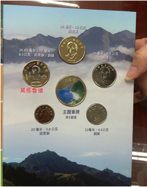 「太魯閣國家公園」平鑄套幣中,50元硬幣及10元硬幣的肖像均是國父孫中山。而1元及5元硬幣的肖像則是前總統蔣中正。比較特別的是,20元的人像是賽德克族抗日英雄莫那魯道,背面則是蘭嶼的達悟族拼板舟。