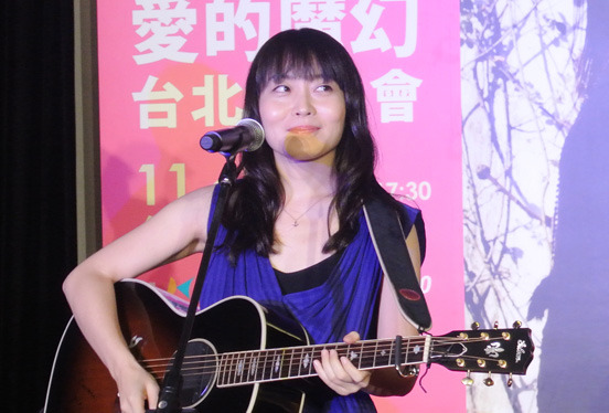 【台灣醒報記者許瑋哲台北報導】愛的魔幻樂團主唱KUMI一身深藍連身裙,吉他手NAOKI則帶著一頂黑帽,帶來一首《Last Smile》讓現場觀眾跟著歌聲一同搖擺。愛的魔幻在28日來台宣傳11月的演唱會,KUMI表示,「這是我們第一次在記者會上表演,因為太想念台灣歌迷了。」睽違5年來台,NAOKI還大喊,「超愛台灣美食,小籠包好好吃。」