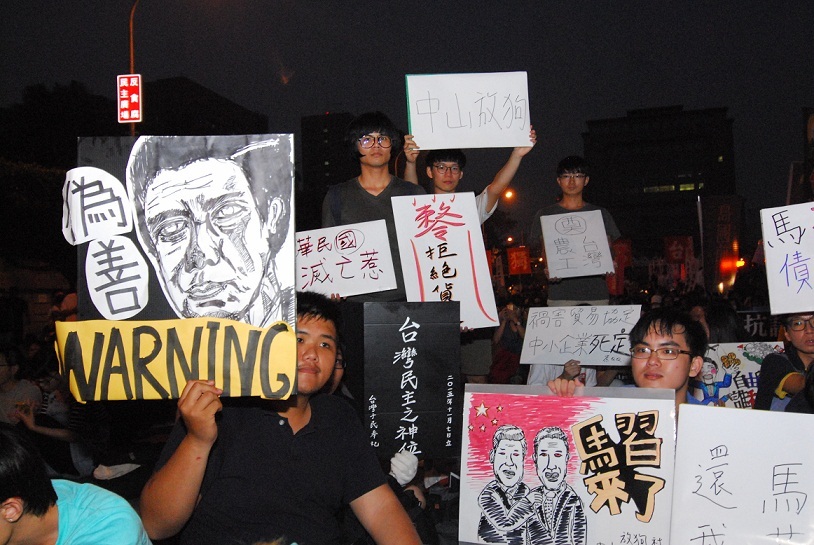 由經濟民主連合、台灣守護民主平台主辦的「停止貨貿談判、抗議馬習會」遊行於7日下午舉行,從經濟部出發,繞經國貿局、農委會,最後駐足總統府前,現場團體來自各界,如基進側翼、婦女新知、長老教會、台聯等,共同表達「馬英九不代表台灣人民」的聲明。
