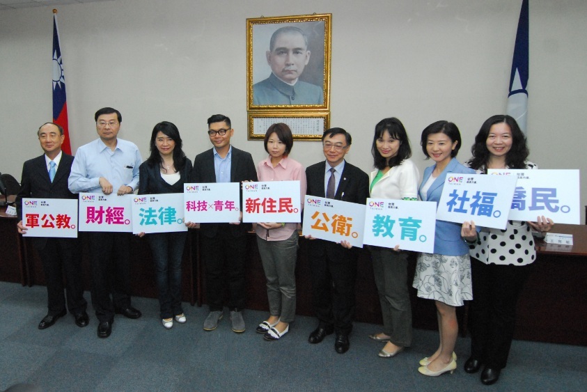 國民黨總統參選人朱立倫22日以黨主席身分,率領包括TED台北主辦人許毓仁、新住民代表林麗蟬、僑務代表童惠珍、高雄醫大副校長陳宜民、淡大學務長柯志恩,以及金管會主委曾銘宗、現任立委李貴敏、王育敏、黃復興黨部書記胡筑生等九位與記者見面。朱立倫表示,這份專業不分區立委提名名單展現了國民黨多元特性。