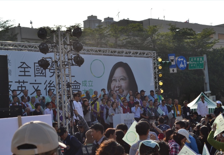 蔡英文與高雄市長陳菊、民進黨前祕書長蘇嘉全一同出席全國勞工蔡英文後援總會成立大會,現場有來自彰化、雲林各縣市勞工總會、各職業工會、台灣勞動權益促進會,甚至包括傳統產業大本營的台糖、中鋼、自來水、台鐵,以及銀行界的渣打銀行工會、土地銀行、合作金庫、永豐、安泰、上海商銀等銀行工會等80個以上的工會。