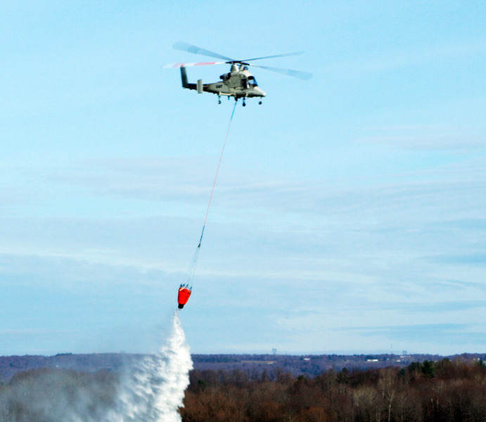 過去80年來,人力駕駛的空中滅火機只能在白天執行滅火任務,而無人滅火直升機K-MAX可以執行全天候的任務,讓滅火工作時數比傳統多2倍時間,直升機吊著從湖裡撈起來一噸的水飛行和一般飛行技術不同,需要經過特殊飛行駕駛訓練,而K-MAX藉由電腦運算達成飛行的平衡。