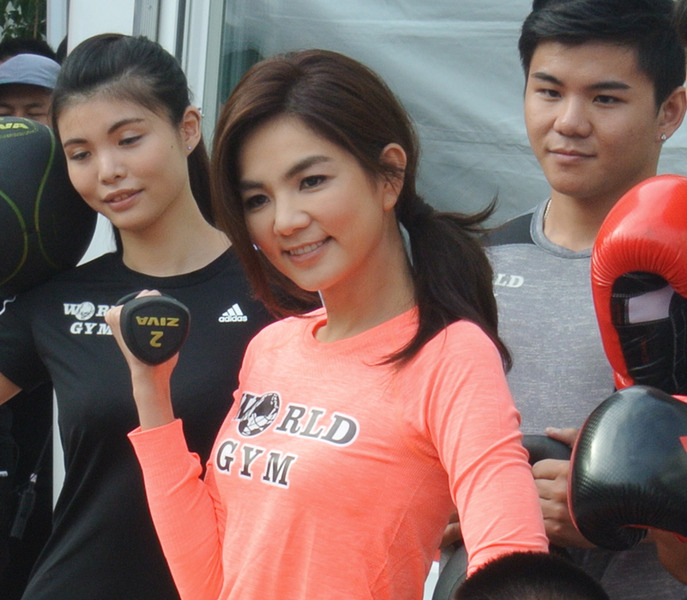 媒體則好奇的發問,「那為何妳在擺放在world gym的人形看版會如此嚴肅?」她則馬上收起微笑:「因為我要監督你們每一個人,有沒有好好的運動!」