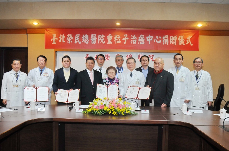 台北榮總於21日上午舉行興建臺灣首座重粒子治癌中心簽約儀式,及宏國、宏泰集團及尹衍樑先生集團的捐贈儀式,由院長張德明代表受贈表示感謝。尹衍樑及三重幫宏國關係企業林謝罕見董事長、林鴻明副董事長、宏泰企業機構林堉璘董事長、宏泰建設林鴻南總經理一同出席。