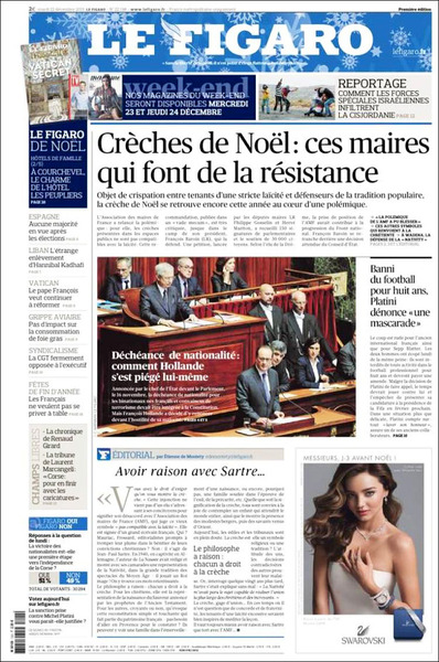 在11月18日,法國市長協會(AMF)發佈了一道手冊,宣稱「聖誕馬槽的場景出現在市政中心,不合政教分離原則」,再度引發了陳年的政治與神學爭辯。