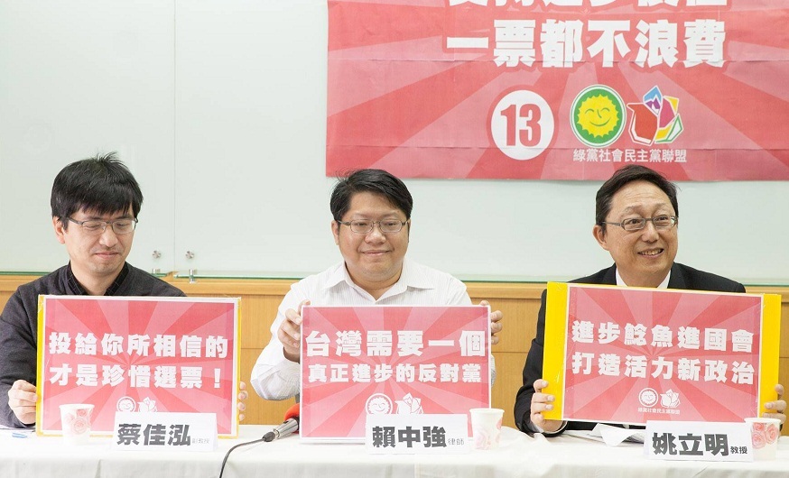 綠黨社民黨聯盟29日召開記者會呼籲選民「票投小黨」。支持綠社盟的姚立明指出,國會被兩大黨主導像灘死水,需要清新的力量注入,他認為小黨挺進國會可發揮鯰魚效應,「只要有2、3條鯰魚,就可以讓死氣沈沈的國會動起來。」