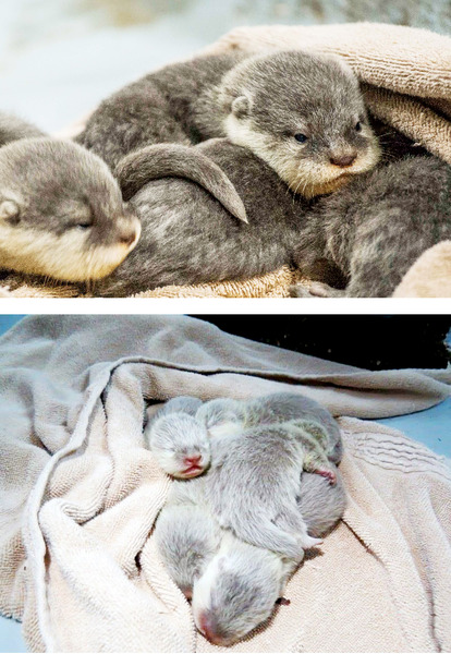 【台灣醒報記者鄭羿菲台北報導】還記得去年11月剛出生的「小爪水獺」5小福嗎?5小福開始換毛了,最快春節後能與民眾見面。動物組助理研究員王怡敏3日受訪時說,「5小福們現在會把圓圓的頭靠在弟兄姊妹身上,張著好奇的眼睛觀望四周環境。」保育員鍾嘉能也說,「5小福已開始在欄舍內趴趴走探索環境,只是後腿還不能完全使力。」