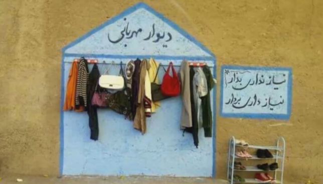 《半島電視台》報導,伊朗今年在各大城市出現了許多「冬衣牆」,旁邊有標語寫著「不要的大衣都可以掛在這裡,這不僅會充實你的靈魂,還能幫助需要的人」,民眾可以在冬衣牆邊自行吊掛不需要的冬衣供街友取用。發起人表示,他從社群網站上看到在澳洲、歐洲都有類似的活動,沒想到活動很快從馬什哈德散布到伊朗各大城市,現在各地都有臉書、Instagram社團響應。