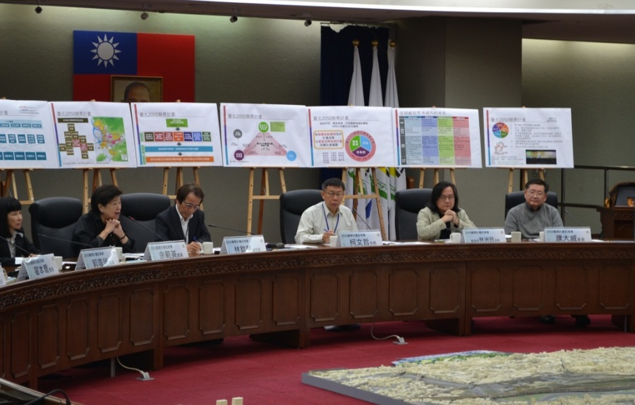 台北市政府在6日舉辦2050願景計劃記者會,由市長柯文哲、副市長林欽榮、都發局長林洲民及市政委員等共同向外界說明,市府規劃整個大台北地區直到2050年的願景計劃。柯文哲表示,希望透過這樣的行動,能夠打破目前都市計劃受到選舉任期的限制,他說,「城市治理應該跨越個人的任期。」