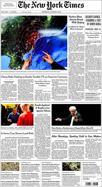 關於中國市場的悲觀預期從新年後的第一個週一(4日)開市就已浮現,當天出現「熔斷」的結果讓美國、歐洲的股票如骨牌般全面潰敗,法蘭克福DAX指數下跌3.2%,而倫敦富時100指數下跌了2.5%、泛歐績優股指標FTSEurofirst 300指數週四下跌2.3%;石油方面,擔心中國進口需求降低,西德州原油指標價格7日下跌4%。