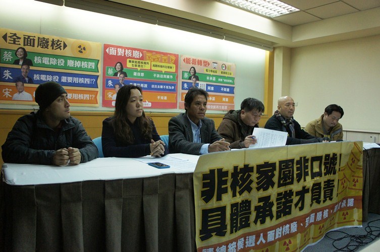 聯盟指出,低階核廢料在蘭嶼貯存早已超過30年年限,但朱蔡兩陣營都迴避盡速遷出的具體辦法,僅說要「凝聚社會共識」和「尋找替代地點」,而親民黨則完全略答此題。反核鬥士、宜蘭人文基金會董事長陳錫南強調,核廢料「是台灣的災難」,認為未來總統務必要親自視察、妥善處理。