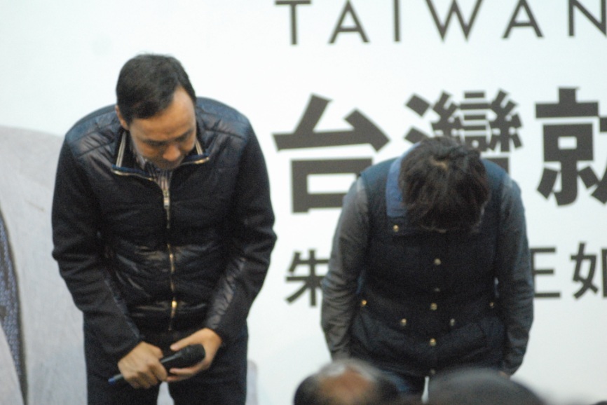 第14屆總統大選16日結果出爐,國民黨參選人朱立倫慘輸對手民進黨主席蔡英文308萬票,他17日在「選後志工感恩茶會」上再度向外界致歉,小小場地湧入60多名志工,許多都年過60歲,當朱立倫在台上喊出,「我完全承擔,我負最大責任」時,台下許多志工臉上都露出不捨的表情。