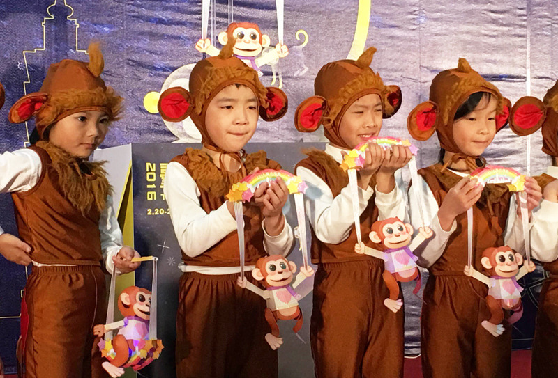 北市府為了獎勵在記者會上賣力跳舞表演的幼兒園小娃兒們,特別大放送將提燈提前送給他們,跳完舞的小娃兒們領了2016年的北市猴燈「樂樂」,發現不一樣的造型,紛紛互相觀望,還顧不得下台就在台上就說笑著比較起來。