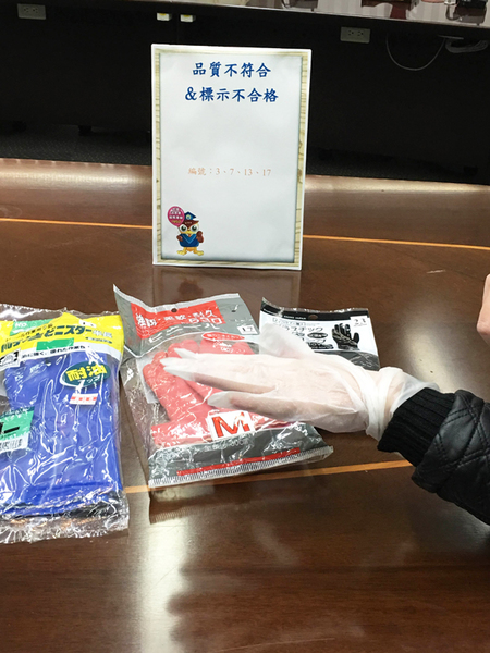 「本次抽樣檢測有超過6成8的塑膠手套不合法規標準。」劉清芳25日在「塑膠手套檢驗結果」記者會上表示,春節前家家戶戶都習慣大掃除,將家中的髒污晦氣一掃出門,但為了讓手暖一點、隔離低溫水流,婆婆媽媽們常會戴上市售的塑膠手套,所以在去年11及12月間,消保處對台北市、新竹縣市、台中市及嘉義市等地販售的塑膠手套抽樣檢測。