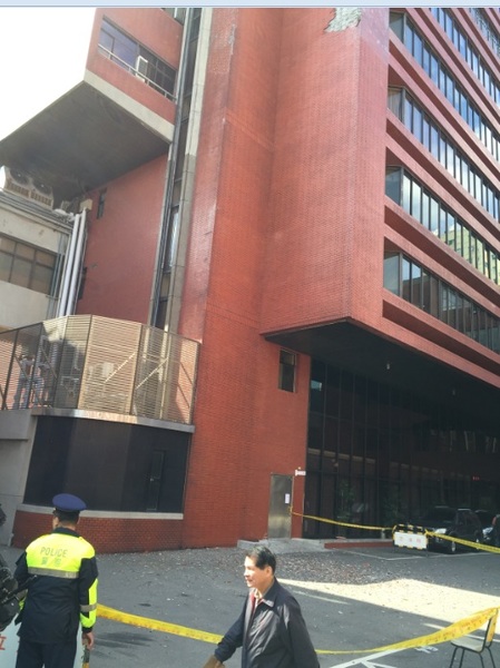 立法院總務處表示,24日寒流來襲,群賢樓外牆磁磚就發生剝落情況,立即找人處理,這兩天寒流持續發威,造成熱脹冷縮,一早磁磚持續剝落,目前已將群賢樓外靠近康園的大門關上。