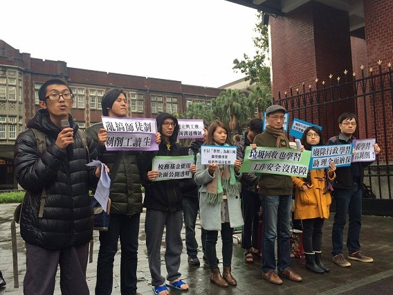 【台灣醒報記者黃捷台北報導】大學為規避兼任助理納保,再出奧步?繼政大校方只認定「學習型助理」、不為助理投保之後,高教工會2日指控,台師大也以「師徒制方案」、「行政學習獎助方案」名義侵害學生教學助理權益。對此,台師大校方回應指出,行政學習內容具職場實習意義,並非工讀。