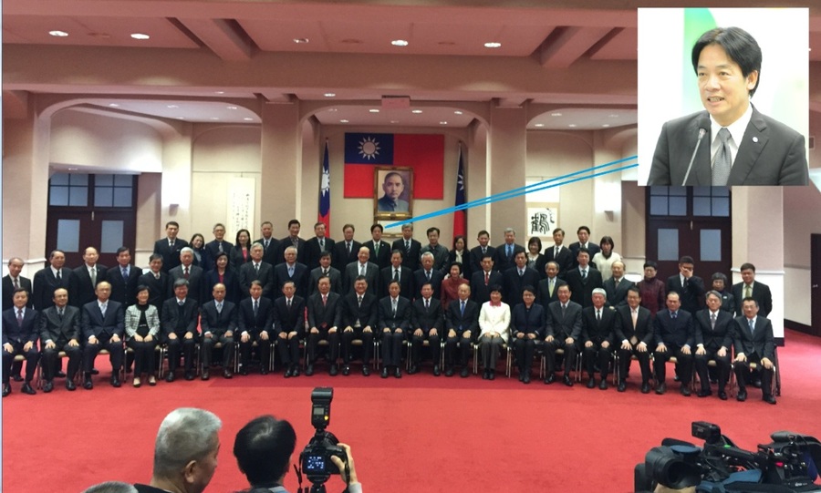 【台灣醒報記者鄭國強台北報導】新任行政院閣員4日拍大合照,仔細一看,台南市長賴清德竟也入鏡,而且還站在中央最高處?行政院發言人孫立群表示,賴清德等六都行政首長代表是例行性出席行政院會,順便一起拍合照,不需多做聯想。賴清德表示,一方面來感謝政院這次寒害補助農民的幫忙,另一方面也提出在南部設立茲卡或登革熱研究、防疫中心的可能。