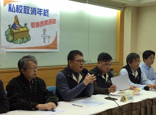 全國教師工會總聯合會4日召開記者會,點名中華中學、嘉南藥理大學、中山醫學大學及遠東科技大學4所私立學校,經黑箱決策訂定年終獎金標準,非但沒有跟教師代表或工會協商發放標準,更將和教學工作無關的招生、產學合作等標準納入發放門檻,讓私校教師難過年。