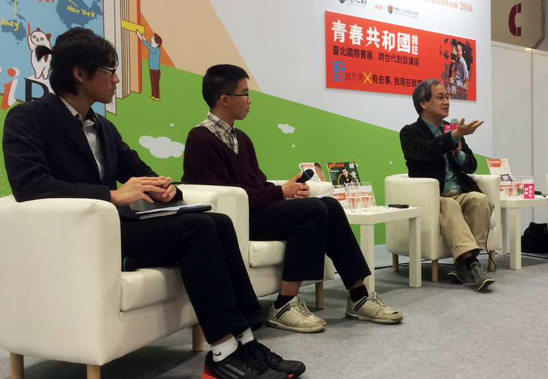 小野21日於台北書展與兩位高中生談論「台灣文化」。其中,台中一中的張存一同學詢問小野老師,台灣對文化應該秉持怎樣的態度來面對?而成功高中的鍾承恩同學也請教,小野老師從事反核及環保的經驗。