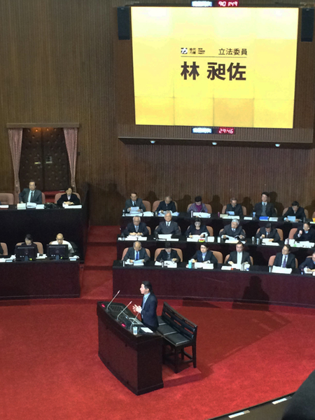 立法院第1會期第1次會議23日召開,立法院長蘇嘉全對於沒有一位立委請假表示「很開心」。首度質詢的林昶佐,一早就砲火猛烈,逼問張善政「台灣的尊嚴在哪裡?」他說,國際賽事上,中國叫中國隊,我們卻叫中華台北隊,「這是對等尊嚴嗎?」他質疑,在馬政府「兩岸非國與國關係」的邏輯下,對岸是否應該改成「中華北京」?
