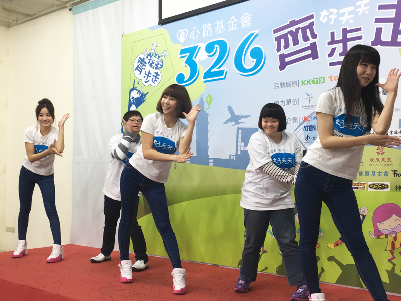 【台灣醒報記者鄭羿菲台北報導】人氣啦啦隊少女團體「伊梓帆」擔任心路愛心大使,於23日與唐氏症患者「豪慶」一起跳著「326齊步走」舞蹈,一點都不輸專業舞蹈團。伊梓帆3位美女俏皮同聲說,「民眾326出門與智能障礙者(智障者)者一起健走,做公益還能抽日本旅遊大獎。」