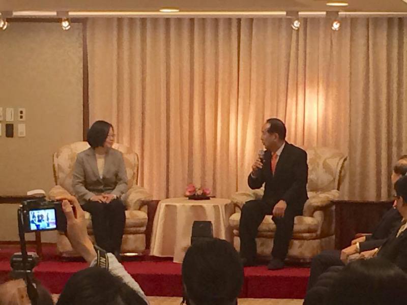 蔡英文致詞時表示,這是大選後第一次與宋楚瑜會面。她提到,雖然大選期間兩人是競爭對手,但每一次在辯論會上、或是宋楚瑜在公眾場合闡述理念時,她都很仔細聆聽宋楚瑜的談話內容。
