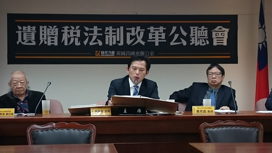 黃國昌22日召開「遺贈稅法制改革」公聽會,邀請多位學者專家與財政部官員,針對2009年稅制改革所帶來的問題進行討論。黃國昌指出,2009年時政府為吸引資金回流,將遺贈稅由累進稅率50%一口氣調降至單一稅率10%,贈與稅的免稅額也從每年100萬元調高至220萬元,造成我國稅制存在不合理分配的現象。