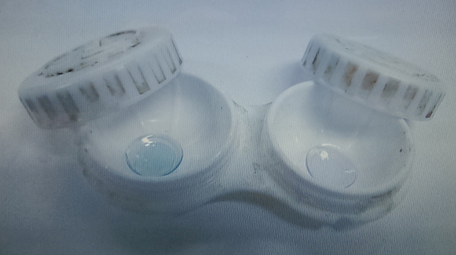 經醫師檢查發現,男學生的塑型片鏡盒從未更換,嚴重髒汙,鏡片上蛋白大量沉積,呈現霧狀,引起角膜過敏、發炎、破皮症狀。顏敏芳表示,配戴角膜塑型片不像點散瞳劑會畏光,夜間配戴過後,白天就不需戴眼鏡,但臨床觀察發現,許多人因指甲過長、鏡盒未換、鏡片未確實清潔而導致眼睛受傷。
