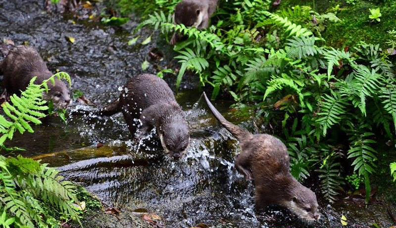 曹先紹說,五寶們適應能力也很快,Nina回頭帶他們下水後,五寶便開始集體行動探險戶外展場,「有時候在小竹筏上休息觀察環境,有時候在岸上矮叢間竄來竄去,只要落隊就趕緊扯開喉嚨大喊,而在水中悠游的Nina就會趕緊跑來幫忙。」現在五寶已經對展場十分熟悉,民眾也可以看到水瀨一家聚在一起午睡的可愛萌樣。
