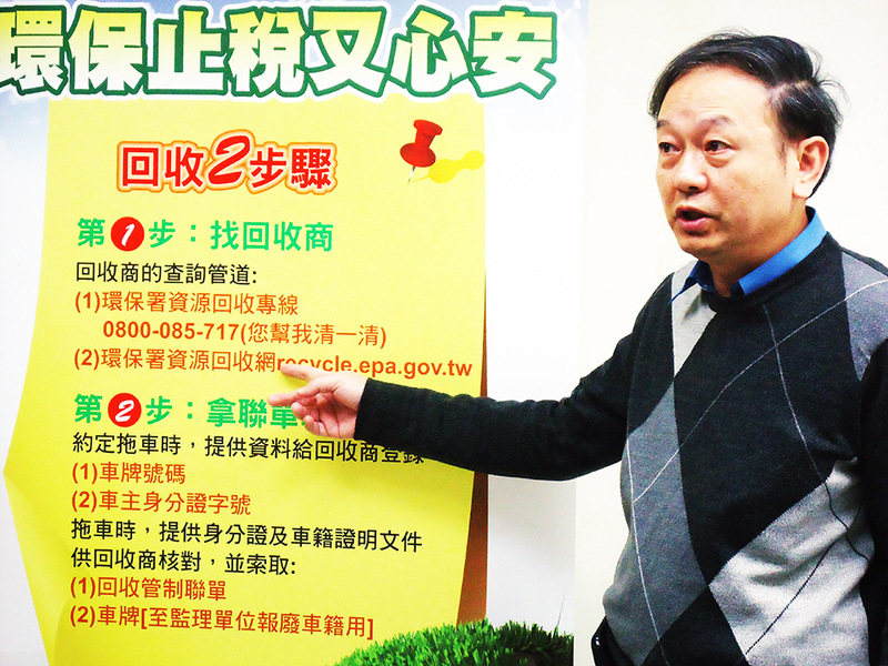 【台灣醒報記者林亭妤台北報導】財政部年前推出的環保獎勵措施中,汽機車報廢是有條件的!今年1月8日起申請報廢的汽機車,才可享有環保署的回收獎勵金及財政部的汰舊換新車減稅優惠。環保署資源回收管理基金管理委員會執秘許永興19日表示,向環保署申請回收金也務必找合法的回收商並索取廢車回收管制聯單,以免吃虧上當。
