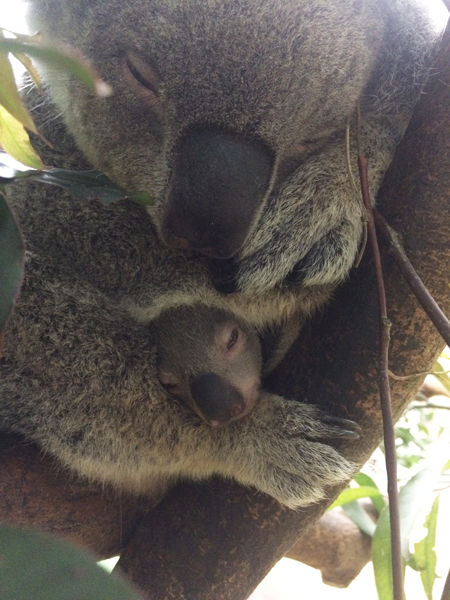【台灣醒報記者鄭羿菲台北報導】張大嘴打呵欠,無尾熊媽媽「Empress」的寶寶萌樣瞬間就被捕捉。北市動物園發言人曹先紹19日受訪時表示,「6個半月大的無尾熊寶寶要準備離開育兒袋了,才會常露腳、探頭。」保育員笑說,「最近天氣偏暖,寶寶特別會探出頭來打呵欠納涼,只長了2顆門牙的萌樣非常可愛。」