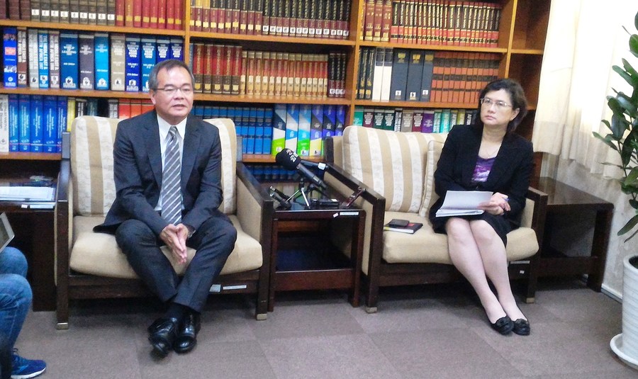 外交部NGO國際事務會副執行長沈文強與發言人王珮玲出席記者會(photo by 台灣醒報/黃敬哲)