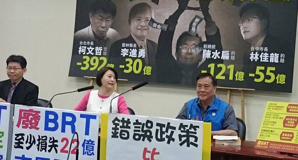 「廢除BRT後損失22億以上的建置費、規劃費,原本年收入達2.7億、租金收入9800萬,也都全數泡湯。」台中市議員楊正中指出,102年BRT盈餘有3700萬,103年盈餘有1.7億,後來BRT公司把黃金路線拱手讓給民營公司,導致104年虧損1億,105年虧損1.64億,市長林佳龍廢除BRT後更是損失大把鈔票。