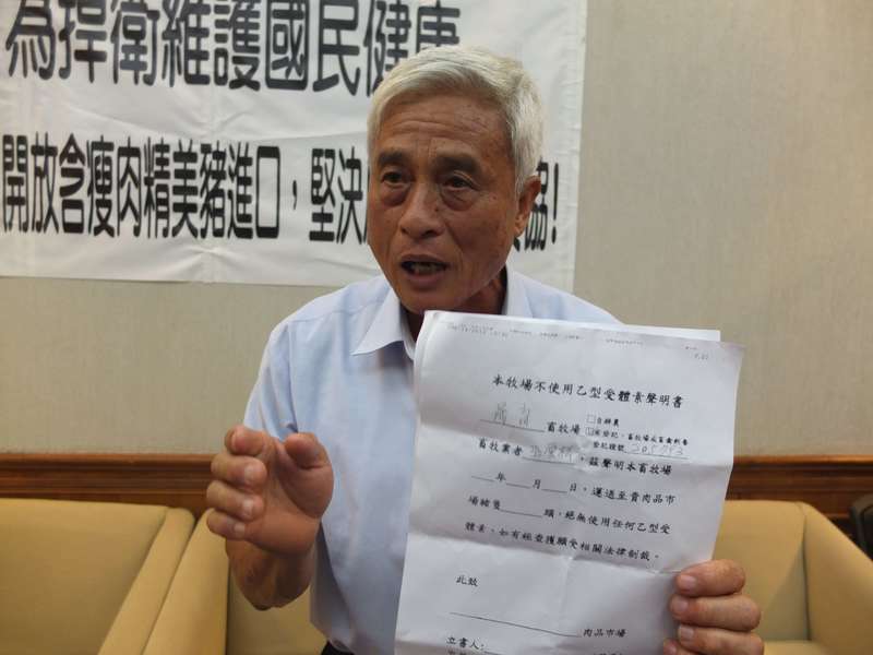 「我們都要先簽署不使用瘦肉精的切結書和單一牧場出豬證明單,才可以把豬隻送到屠宰場去屠宰。」南投縣養豬協會巫雲松理事長拿出切結書證明台灣豬肉的品質。根據農委會檢疫局的統計資料,104年度畜禽乙型受體素抽驗結果中,檢疫局共查驗9643件豬隻,也僅有1件驗出非法使用瘦肉精。
